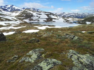 Bin am Sonntag nach der sehr angenehmen (aber teuren – mehr als 60 € für ohne Bad) Hüttennacht wieder im Regen losgefahren. Aber hinter Lillehammer klarte es auf und auch die Sonne kam hin und wieder durch. Abends dann auf einem „Selbstbedienungscampingplatz“ übernachtet. Am Montag bei gemischtem Wetter noch über 300 km durch die Fjelllandschaft südlich von Lillehammer gefahren. Das war sehr schön. Am Abend dann den Traumplatz zum wilden Camping gefunden.